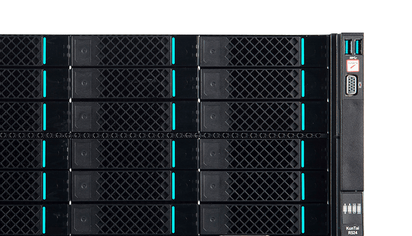 KunTai R524 存储型服务器是逐梦国际数码基于鲲鹏处理器推出的新一代 ARM数据中心服务器。。。主要面向存储业务,,,,具有海量存储、、、、高性能、、、低功耗以及易扩展的特点,,适合为大数据分析、、软件定义存 储等应用场景的工作负载进行髙效加速。。。